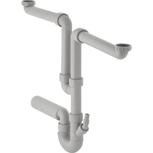 Geberit Doppelkammersiphon für zwei Spültische, mit Winkelschlauchtülle, Abgang horizontal