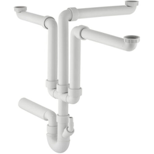 Geberit Doppelkammersiphon für drei Spültische, mit Winkelschlauchtülle, Abgang horizontal