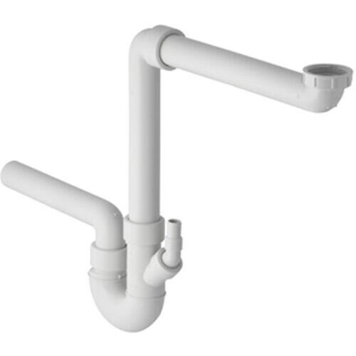 Geberit Doppelkammersiphon für Spültisch, mit Winkelschlauchtülle, Abgang horizontal